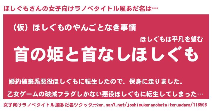 | 男性向けラノベタイトル風あだ名 | 『はたらくほしぐもさま!』 |