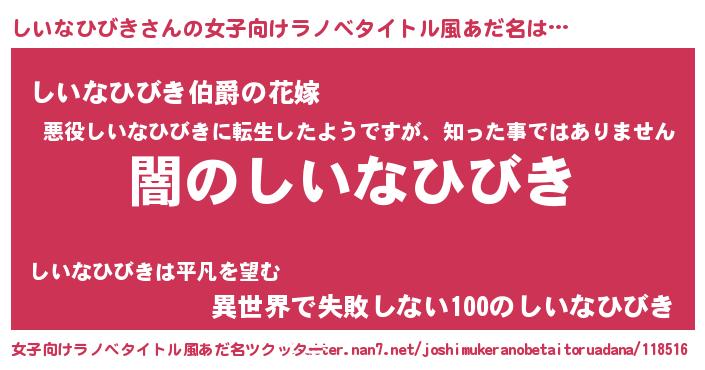 | 男性向けラノベタイトル風あだ名 | 『Re:しいなひびきから始める異世界生活』 |