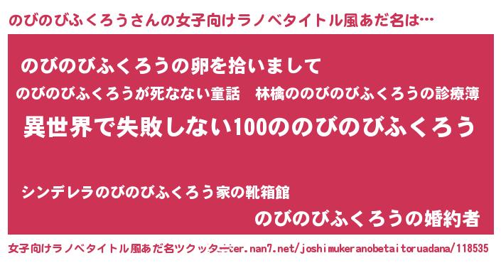 | 男性向けラノベタイトル風あだ名 | 『のびのびふくろうという概念が存在しない退屈な世界 』 |