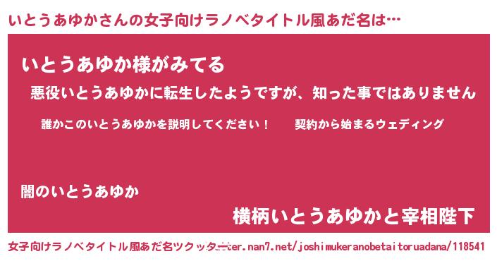 | 男性向けラノベタイトル風あだ名 | 『イトウアユカアートオンライン』 |