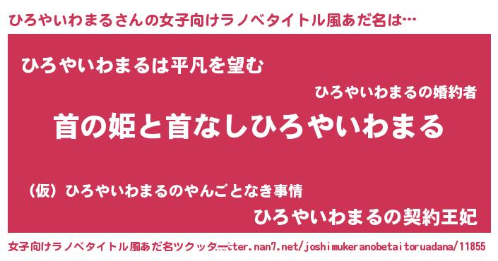 | 男性向けラノベタイトル風あだ名 | 『はたらくひろやいわまるさま!』 |
