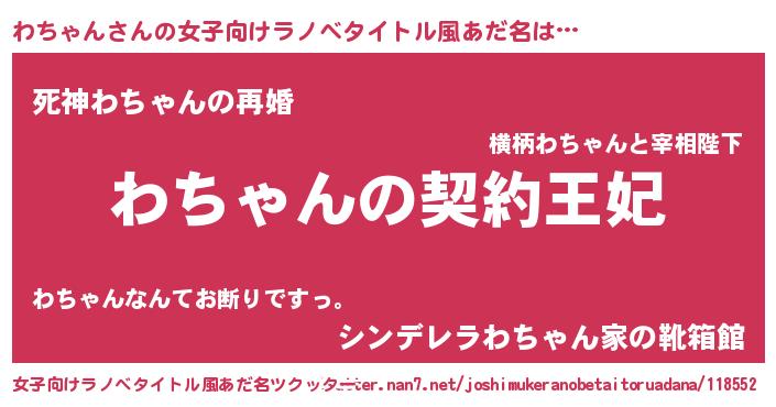 | 胡散臭い通販商品みたいなあだ名 | 『来世でも幸せになれる水素水…その名も「わちゃん」』 |