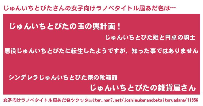 | 男性向けラノベタイトル風あだ名 | 『この素晴らしい世界にじゅんいちとびたを!』 |