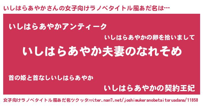 | ヘコむあだ名 | 『いしはらあやか(苦笑)』『いしっ子』 |