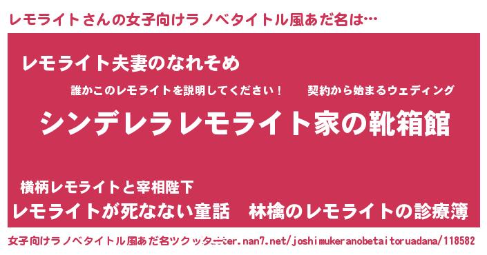 | 男性向けラノベタイトル風あだ名 | 『冴えないレモライトの育てかた』 |