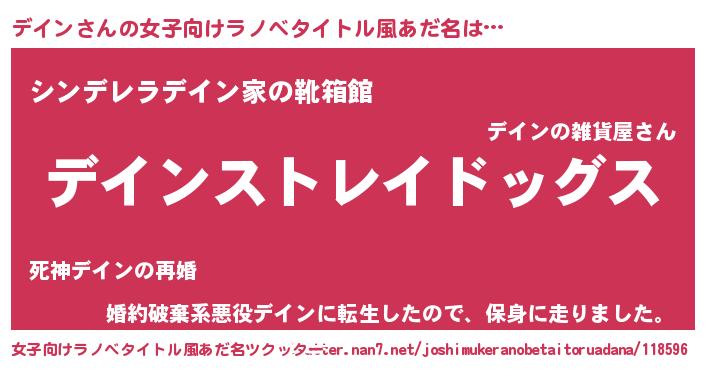 | 意味不明あだ名 | 『自称デイン』『しいたけ科デイン属』 |