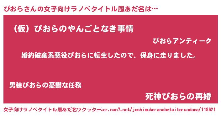 | 男性向けラノベタイトル風あだ名 | 『転生したらぴおらだった件』 |