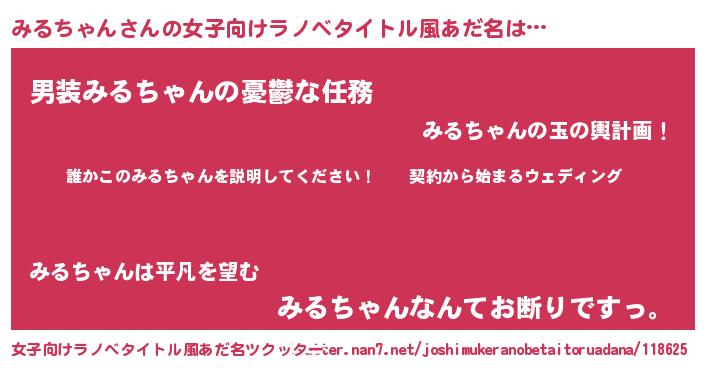 | 男性向けラノベタイトル風あだ名 | 『ミルチャンアートオンライン』 |