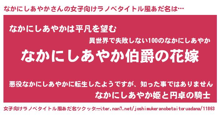 | 意味不明あだ名 | 『なかにしあやかフォーエバー』 |