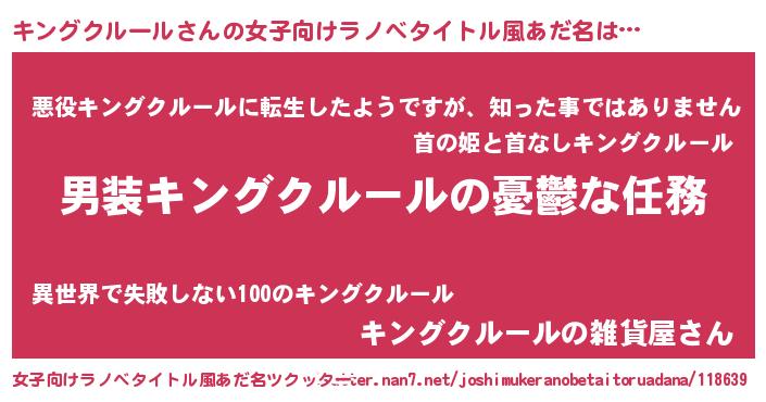 | 男性向けラノベタイトル風あだ名 | 『うちのキングクルールが世界を掌握している!』 |