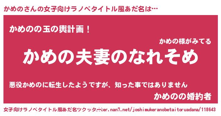 | 胡散臭い通販商品みたいなあだ名 | 『100人中100人が認めたマグネット磁石…その名も「かめの」』 |
