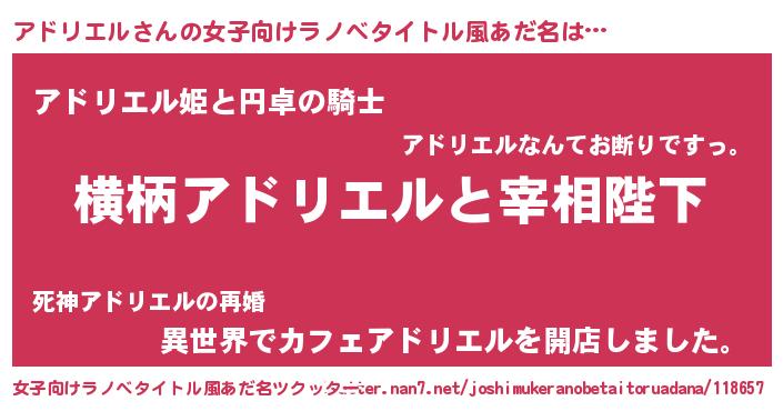 | 男性向けラノベタイトル風あだ名 | 『アドリエルに滅ぼされるだけの簡単なお仕事です』 |