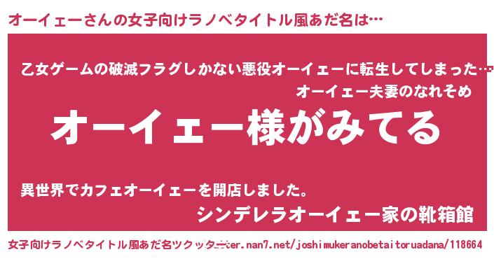 | 意味不明あだ名 | 『とにかく怪しいオーイェー』 |