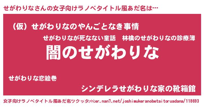 | 意味不明あだ名 | 『自称せがわりな』『ペロリンせがわりな』 |
