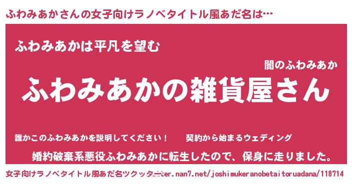 | 男性向けラノベタイトル風あだ名 | 『やはりふわみあかの青春ラブコメはまちがっている 』 |