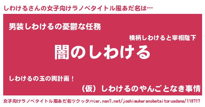 | 男性向けラノベタイトル風あだ名 | 『Re:しわけるから始める異世界生活』 |