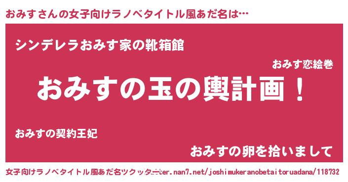 | 男性向けラノベタイトル風あだ名 | 『転生したらおみすだった件』 |