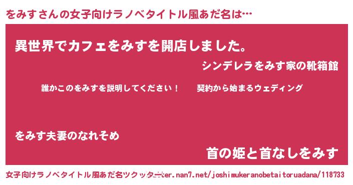 | 胡散臭い通販商品みたいなあだ名 | 『億万長者になれるブレスレット…その名も「をみす」』 |