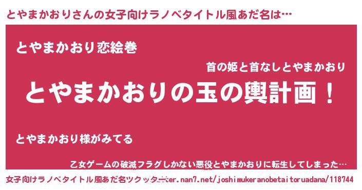 | ヘコむあだ名 | 『とやを』『とやまかおり(笑)』 |