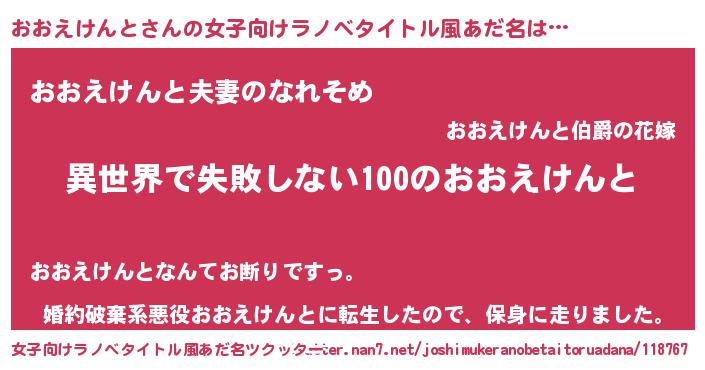 | 男性向けラノベタイトル風あだ名 | 『おおえけんとという概念が存在しない退屈な世界 』 |