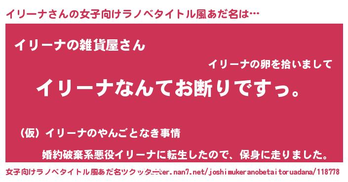 | 意味不明あだ名 | 『自称イリーナ』『イリーナフォーエバー』 |