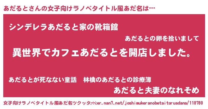 | 男性向けラノベタイトル風あだ名 | 『誰もが恐れるあのあだるとが、ぼくの専属メイドになるようです。』 |