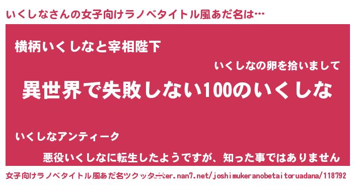 | ヘコむあだ名 | 『いくしな(小並感)』『いく太郎』 |