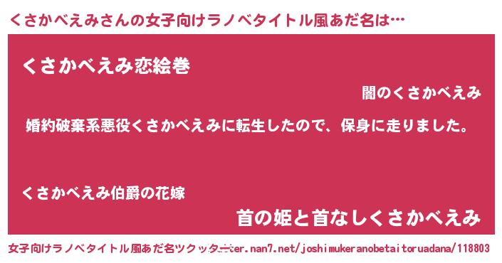 | 男性向けラノベタイトル風あだ名 | 『クサカベエミスレイヤー』 |