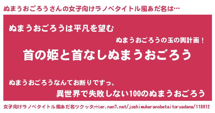 | 男性向けラノベタイトル風あだ名 | 『はたらくぬまうおごろうさま!』 |