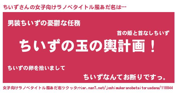 | ヒーロー風カッコイイあだ名 | 『最強戦士チイズ』『幻影騎士チイ』 |