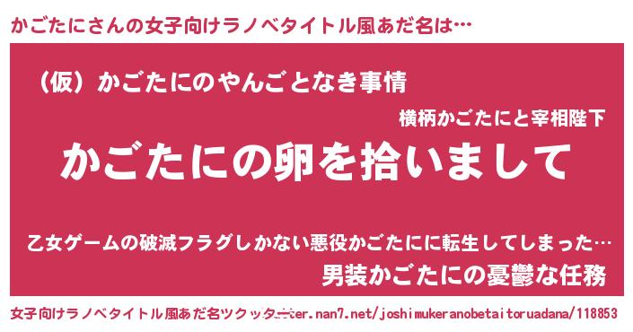 | 男性向けラノベタイトル風あだ名 | 『ダンジョンにかごたにを求めるのは間違っているだろうか』 |