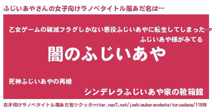 | 男性向けラノベタイトル風あだ名 | 『Re:ふじいあやから始める異世界生活』 |