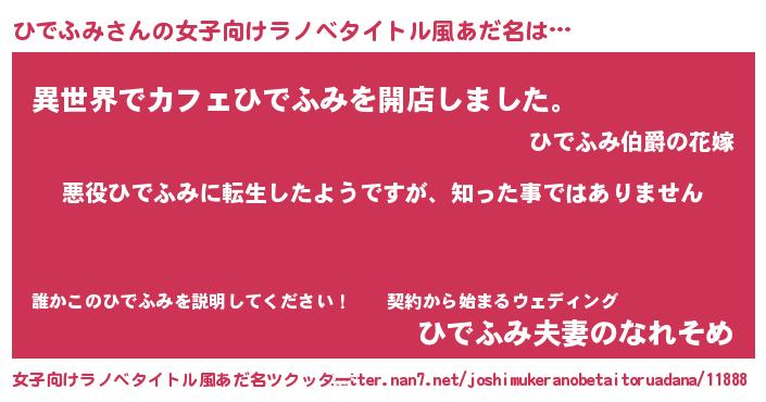 | 男性向けラノベタイトル風あだ名 | 『この素晴らしい世界にひでふみを!』 |