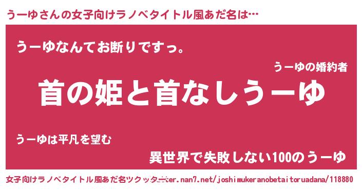 | 意味不明あだ名 | 『自称うーゆ』『永久保存うーゆ』 |