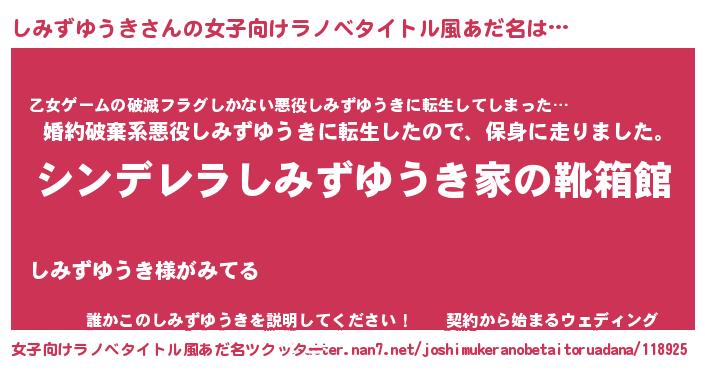 | 意味不明あだ名 | 『住所不定無職しみずゆうき(1歳)』 |