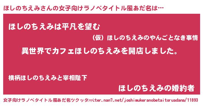 | ヘコむあだ名 | 『ほしのちえみ(苦笑)』『ほしを』 |