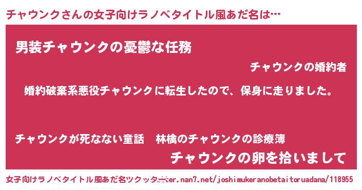 | 男性向けラノベタイトル風あだ名 | 『チャウンクスレイヤー』 |