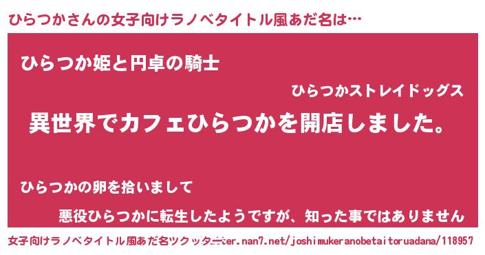 | 意味不明あだ名 | 『永久保存ひらつか』『ペロリンひらつか』 |