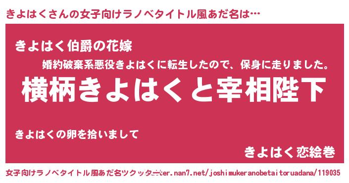 | 男性向けラノベタイトル風あだ名 | 『きよはくに滅ぼされるだけの簡単なお仕事です』 |