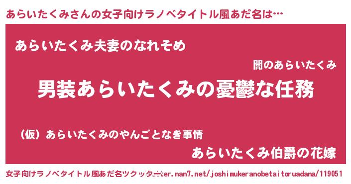 | 意味不明あだ名 | 『眠気覚ましガムあらいたくみ味』 |