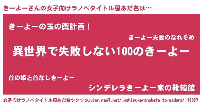 | ヘコむあだ名 | 『きーよー(苦笑)』『なまこ酢』 |