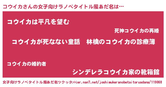 | 意味不明あだ名 | 『住所不定無職コウイカ(4歳)』 |