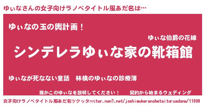 | 男性向けラノベタイトル風あだ名 | 『緋弾のユィナ』『魔弾の王とゆぃな』 |