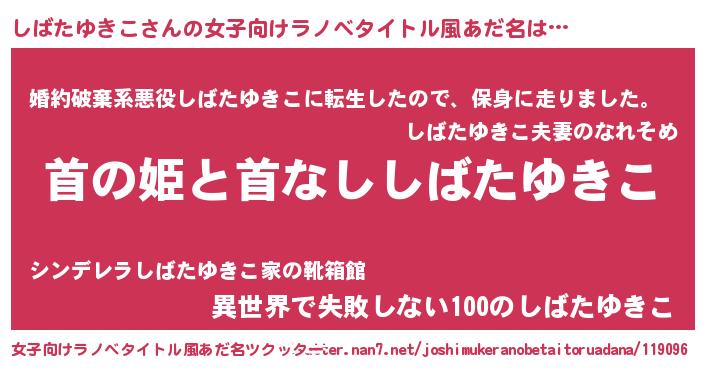 | 胡散臭い通販商品みたいなあだ名 | 『絶対に幸福をもたらす健康食品…その名も「しばたゆきこ」』 |