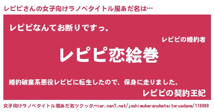 | 男性向けラノベタイトル風あだ名 | 『ノーゲーム・ノーレピピ』 |