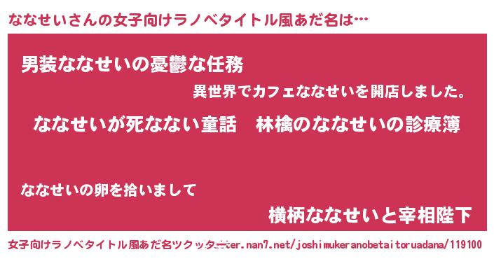 | ヒーロー風カッコイイあだ名 | 『仮面ナナダー』『ネオナナセイ』 |