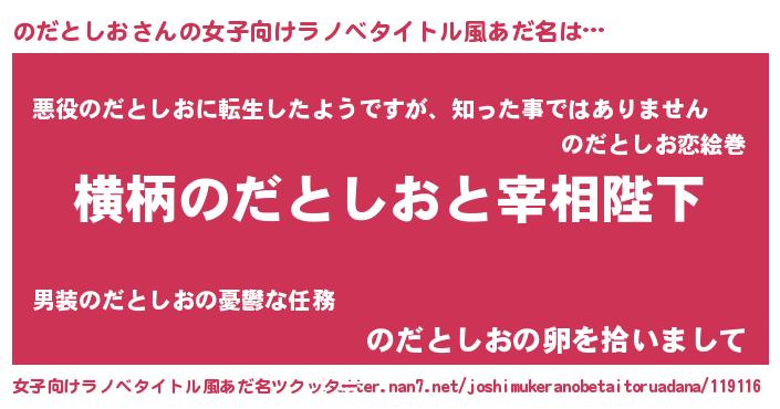 | 男性向けラノベタイトル風あだ名 | 『のだとしおに滅ぼされるだけの簡単なお仕事です』 |