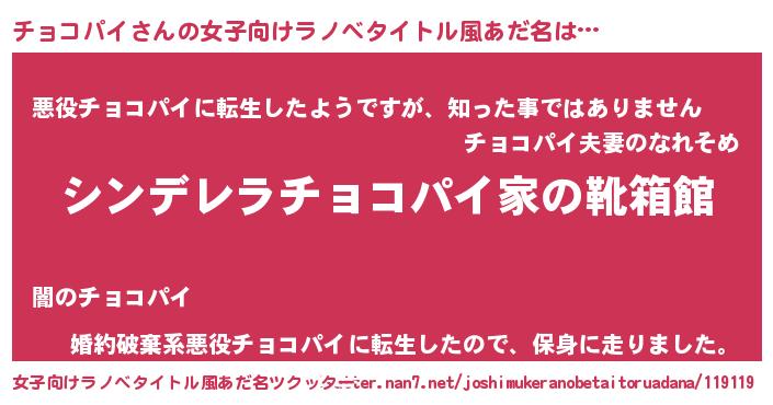 | 男性向けラノベタイトル風あだ名 | 『緋弾のチョコパイ』 |