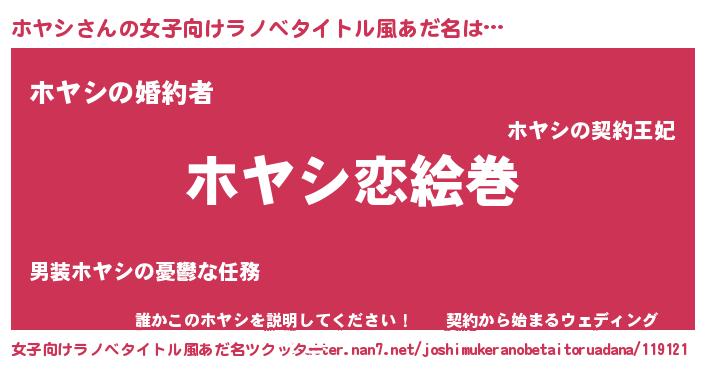 | 男性向けラノベタイトル風あだ名 | 『ノーゲーム・ノーホヤシ』 |