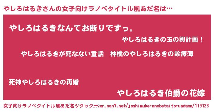 | 肩書あだ名 | 『やしろはるき教官』『やしろはるき総統』 |